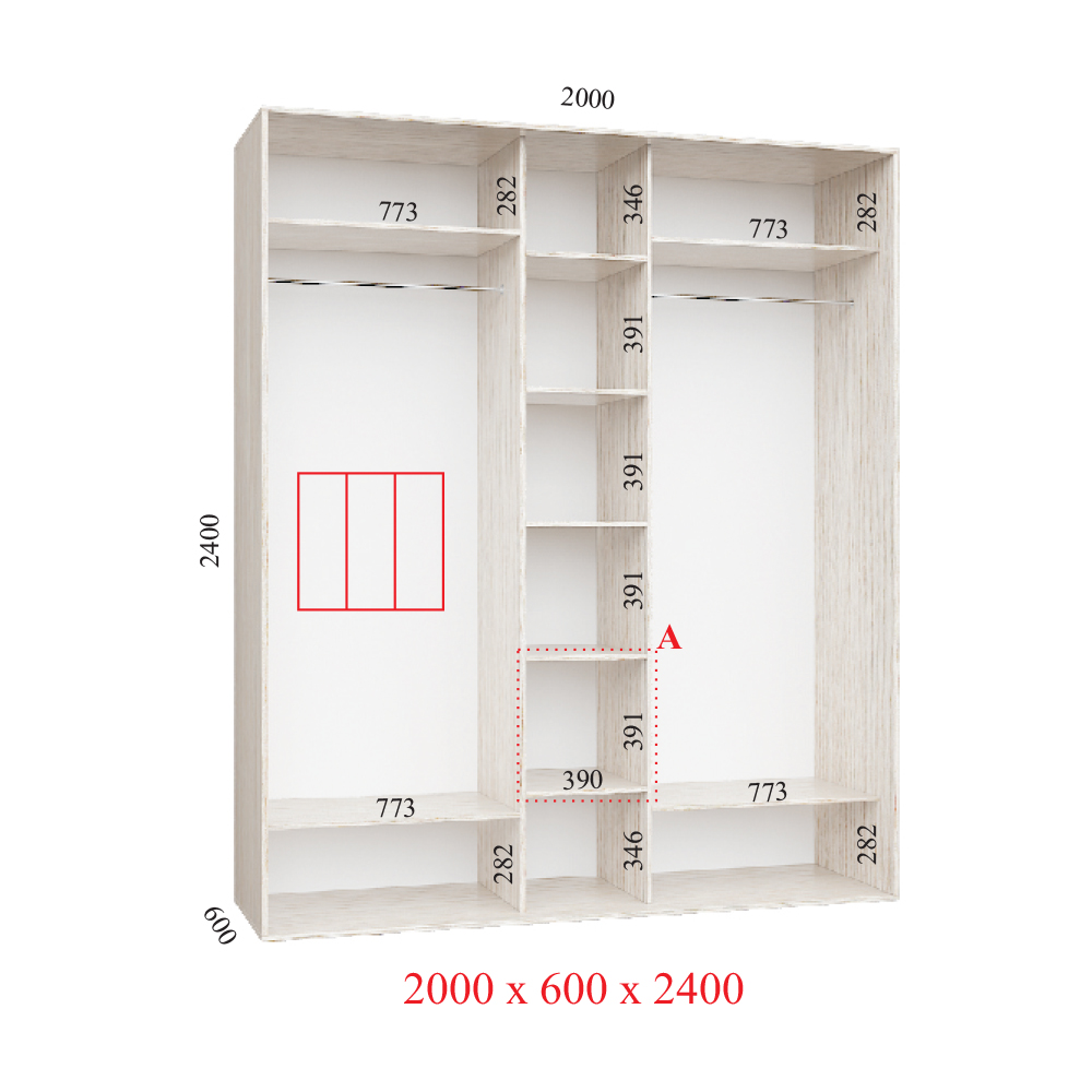 Шкаф-купе 200Х60Х240 комфорт - 3 фасада
