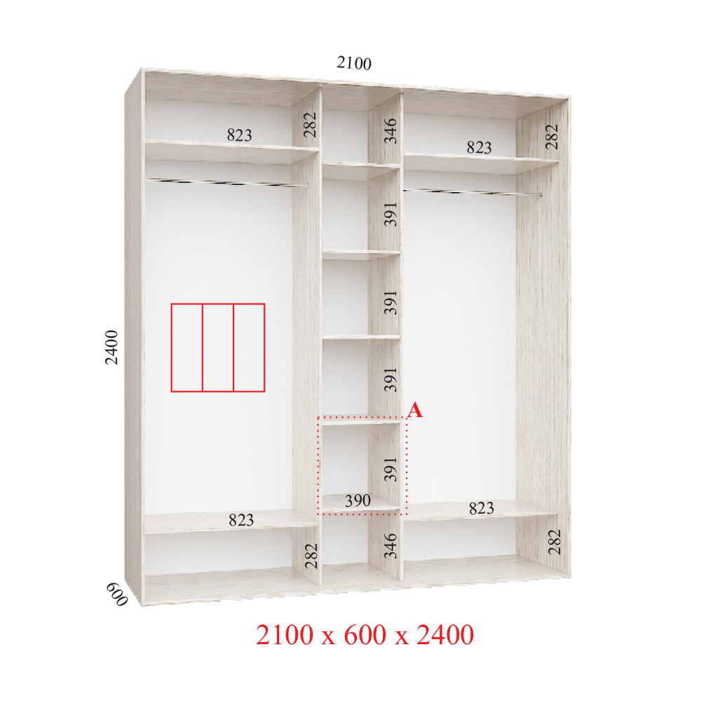 Шкаф-купе 210Х60Х240 комфорт - 3 фасада