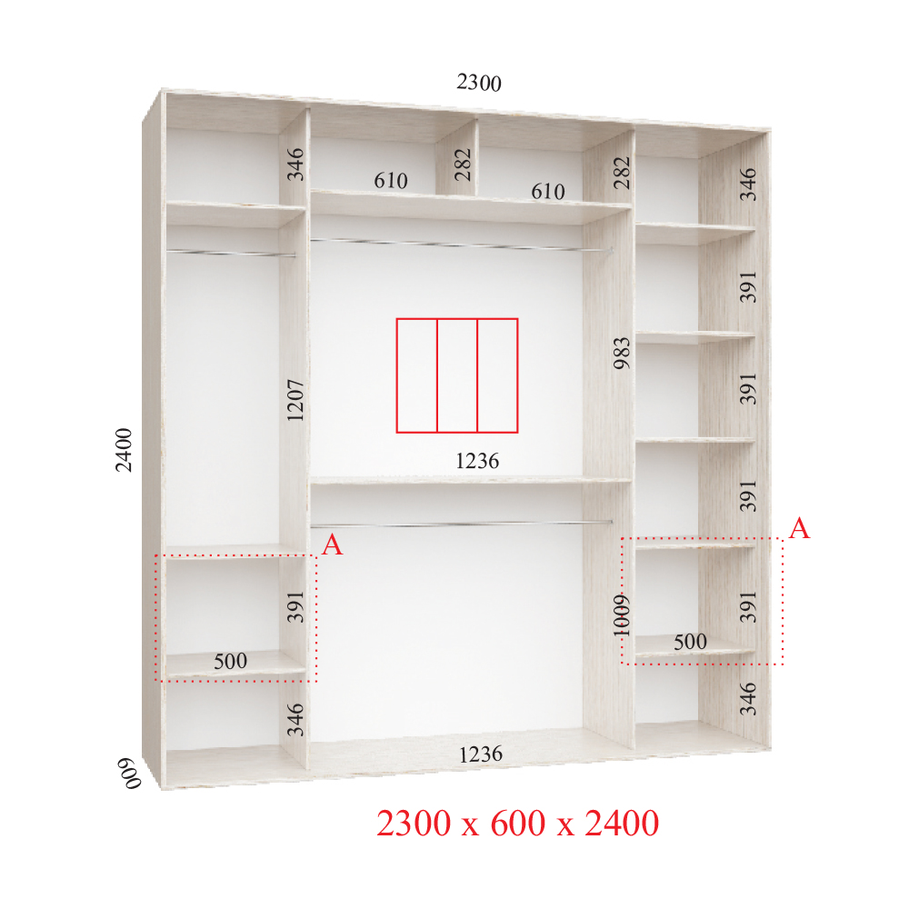 Шкаф-купе 230Х60Х240 Люкс 3 фасада
