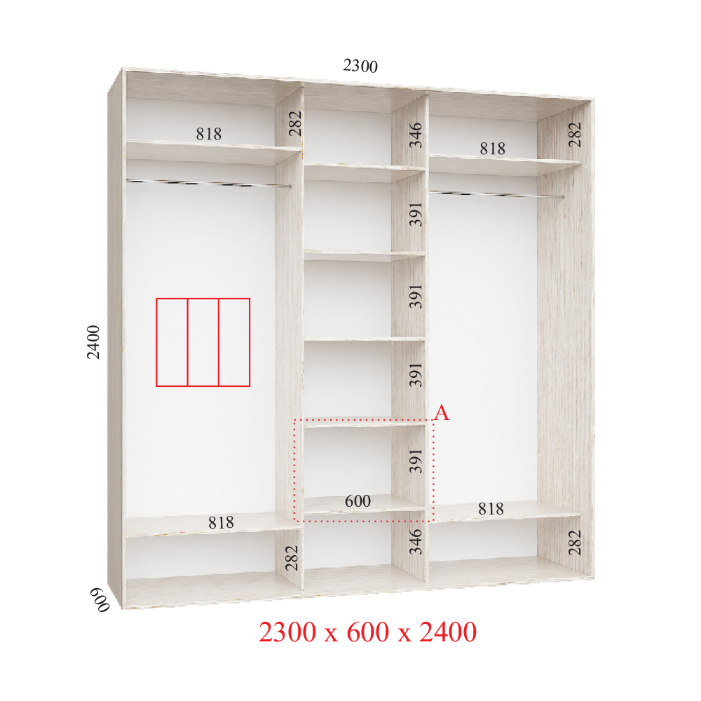 Шкаф-купе 230х60х240 Стандарт – 3 фасада является идеальным решением для тех, кто ценит комфорт, функциональность и изысканный дизайн в своем интерьере. Этот шкаф-купе представляет собой прекрасное сочетание простоты, высокого качества и уникального стиля. Одним из главных преимуществ этого шкафа-купе является его компактный размер – 230х60х240 см.