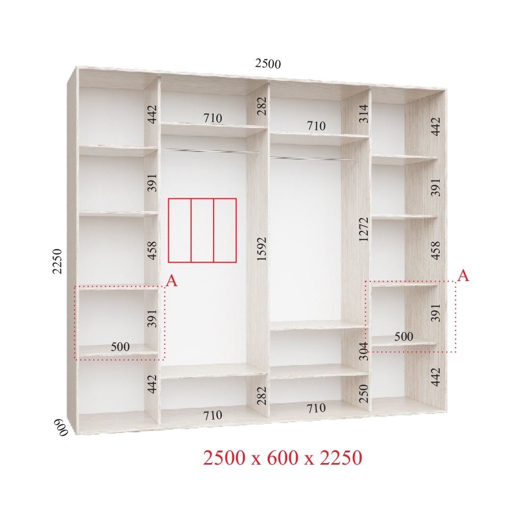 Большое количество полок и вешалок обеспечивают удобное размещение одежды, обуви и различных предметов. Кроме того, Шкаф-купе предлагает уникальную систему "3 фасада", что делает его еще более привлекательным. Благодаря трех распашным дверям, у вас будет простой доступ ко всем вещам внутри шкафа-купе, без необходимости перемещать другие предметы. Это удобство и функциональность, которые действительно сэкономят ваше время и упростят вашу жизнь.