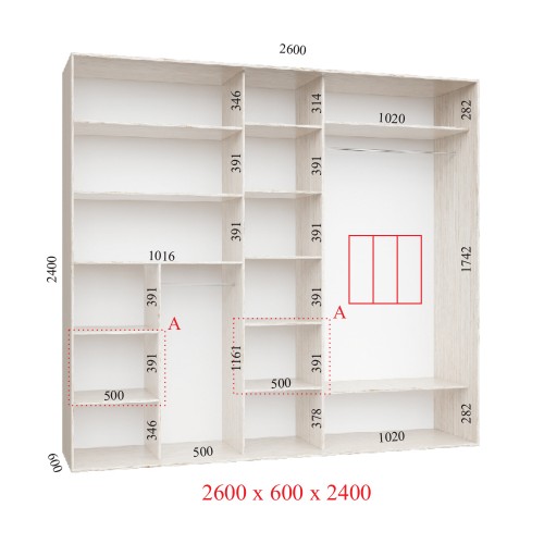 Восхитительное сочетание функциональности, элегантности и комфорта - вот что вы получите, выбрав Шкаф-купе 260Х60Х240 Люкс 3 фасада. Уникальные преимущества этого продукта обеспечат удовлетворение ваших потребностей в хранении и преобразят вашу комнату в пространство, которое вы всегда мечтали о создании. Не упустите шанс добавить функциональность и стиль в свой дом с этим прекрасным шкафом-купе.