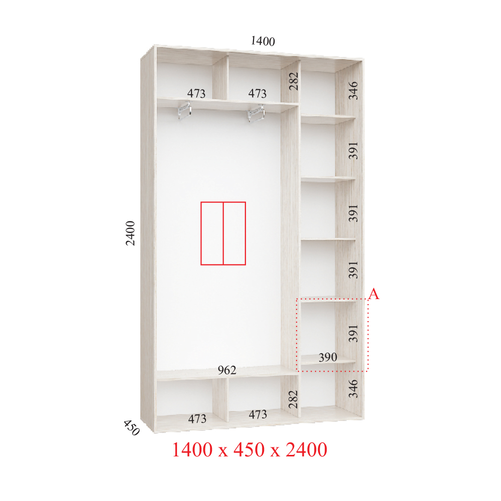 С его размерами 140Х45Х240 см ваша комната будет максимально оптимизирована, а ценное место не будет тратиться зря. Шкаф-купе 140Х45Х240 Стандарт имеет 2 фасада, что позволяет легко организовать доступ к вашей одежде, обуви и прочим вещам. Вы сможете удобно разместить все необходимое благодаря широким секциям и полкам шкафа. Качество материалов, использованных в производстве этого шкафа-купе, является еще одним его преимуществом.