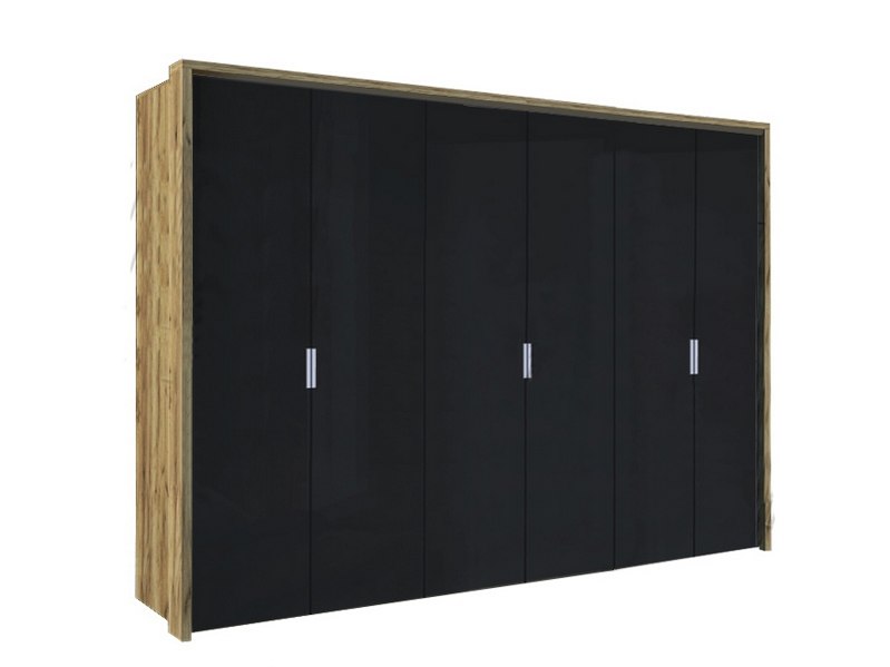 Для соединения деталей используется эксцентриковая стяжка. Шкаф имеет шесть дверей и отсутствие ящиков. Цвет шкафа – дуб крафт – мат. Эта шкаф производится в Украине. Корпус шкафа изготовлен из ламинированного ДСП толщиной 16 мм, а фасад имеет трехслойное высокоглянцевое покрытие, высушенное под ультрафиолетовыми лучами и сделанное из ламинированного ДСП толщиной 18 мм.