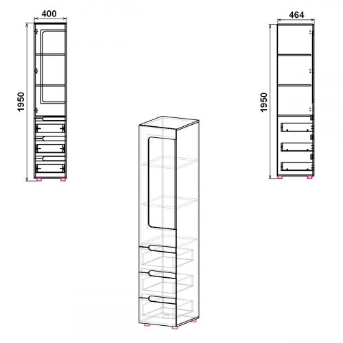 Размеры шкафа тщательно рассчитаны для эффективного использования пространства. Высота 1950 мм обеспечивает достаточно места для хранения разных вещей, от одежды до бытовых приборов. Ширина 400 мм и глубина 464 мм позволяют разместить шкаф компактно в любом уголке комнаты, сэкономив пространство.