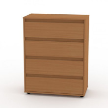 Материал комода - высококачественное ламинированное ДСП, которое надежное и долговечное. Оно легкое в уходе, не требует особых условий эксплуатации и выдерживает влажность и внешние воздействия, что делает этот комод идеальным для повседневного использования.