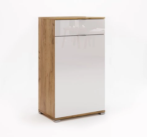 Фурнитура, используемая в этом комоде, также отвечает самым высоким стандартам качества. Она включает в себя трехкомпонентные шариковые телескопические направляющие полного выдвижения, что повышает прочность комода. Петли повышенной прочности обеспечивают плавное закрытие дверцы и ящика. Соединение деталей выполнено с помощью эксцентриковой стяжки MINIFIX, что гарантирует их стабильность и надежность.