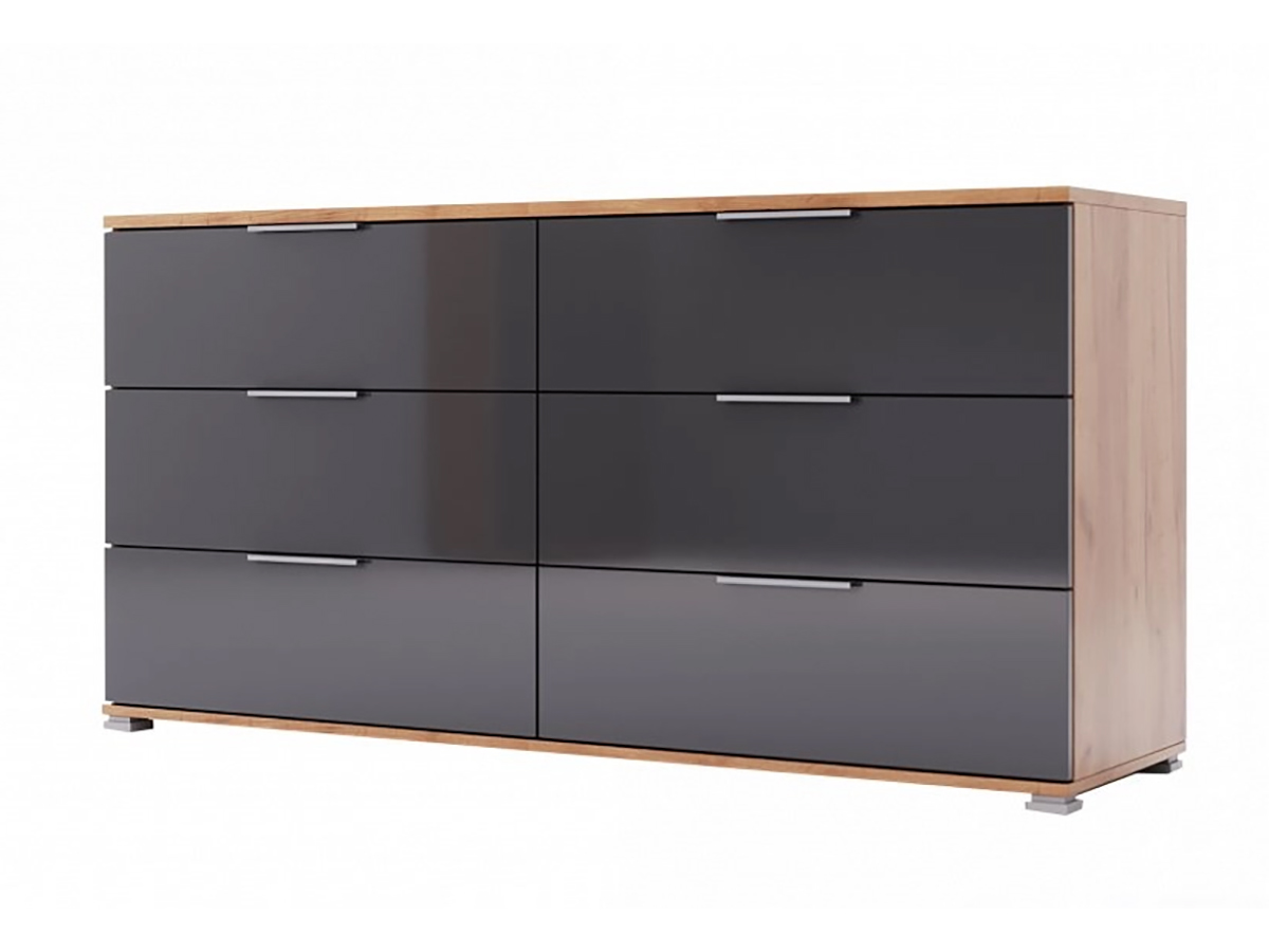 Комод имеет шесть ящиков с металлическими фиксирующими полкодержателями, которые обеспечивают стойкость и надежность. Благодаря телескопическим направляющим полного выдвижения ящиков легко открывать и закрывать без лишних усилий.