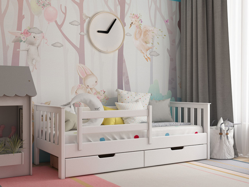 Кровать «Доррис» также обладает регулируемым ограждением, которое позволяет адаптировать его под рост и возраст вашего ребенка. Вы можете спокойно регулировать высоту ограждения, чтобы обеспечить безопасную среду для вашего растущего ребенка. Благодаря своей компактной размерности (80 см), кровать «Доррис» идеально подходит для небольших детских комнат.