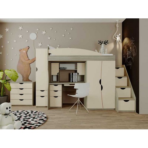 Кровать-горка Саванна известна своей необычайной функциональностью и стильным дизайном, что делает ее идеальным выбором для любой детской или пространства для гостевых переночений. Эта кровать изготовлена с учетом требований качества и безопасности, что делает ее надежным и долговечным мебельным решением для вашего дома.