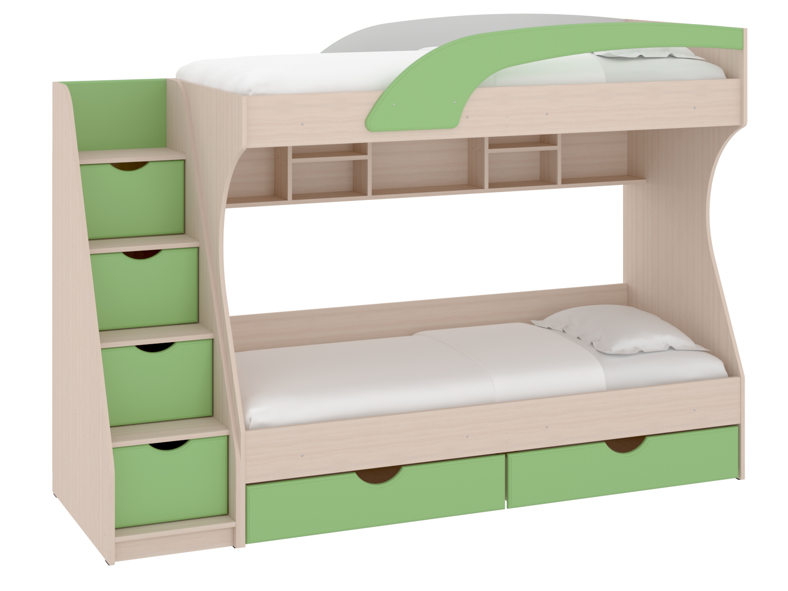 Спальное место кровати имеет размер 1900х800х150-макс. мм, что обеспечивает комфортный и безопасный сон для вашего ребенка. Основание под матрас - сплошной щит, что обеспечивает надежность и устойчивость.