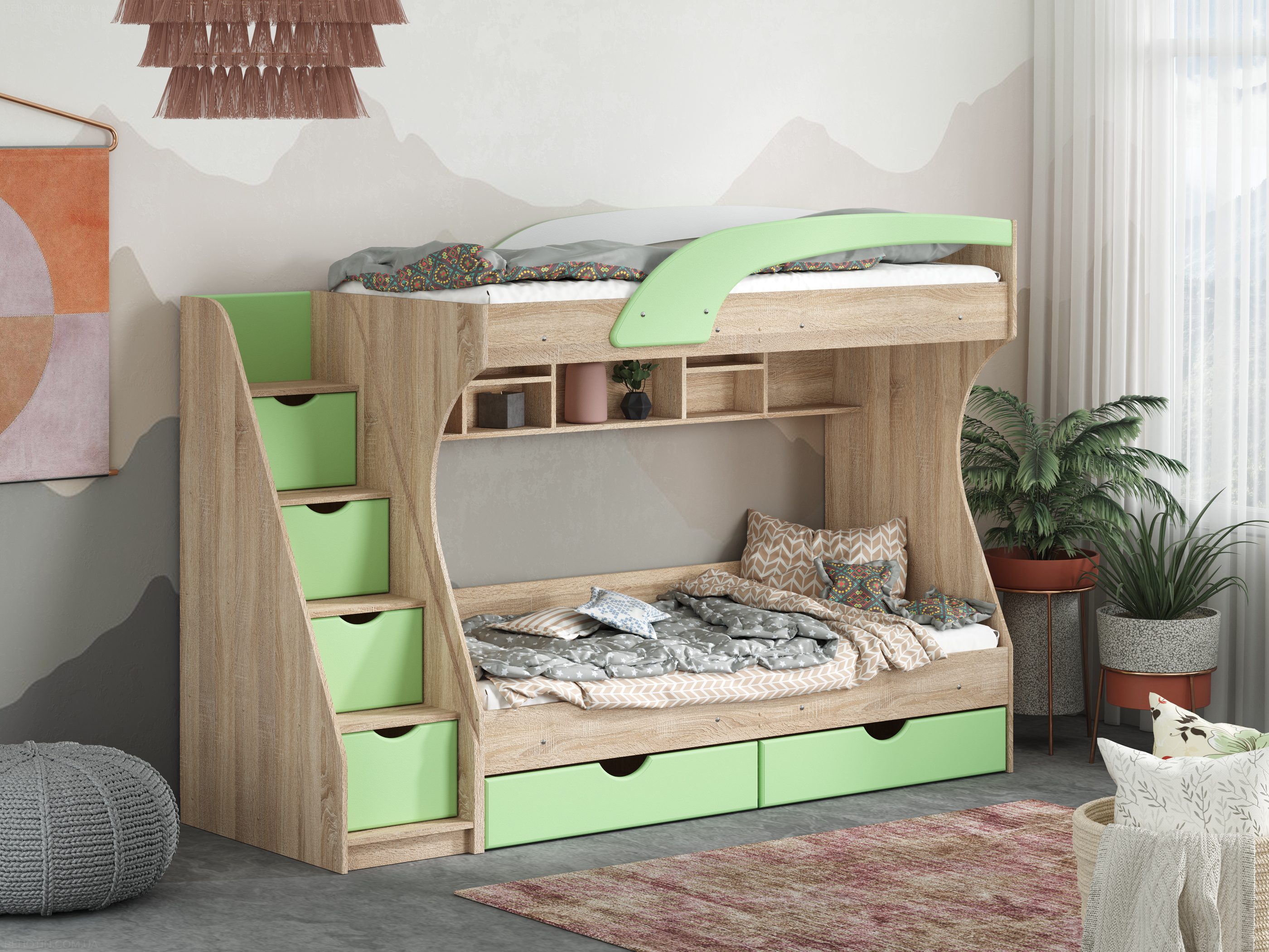 Эта детская кровать поражает своей функциональностью и стильным дизайном. Ее большие размеры позволяют ребенку спокойно спать и чувствовать себя комфортно. Кроме того, она оснащена выкатными ящиками, которые помогают хранить игрушки и вещи в порядке.