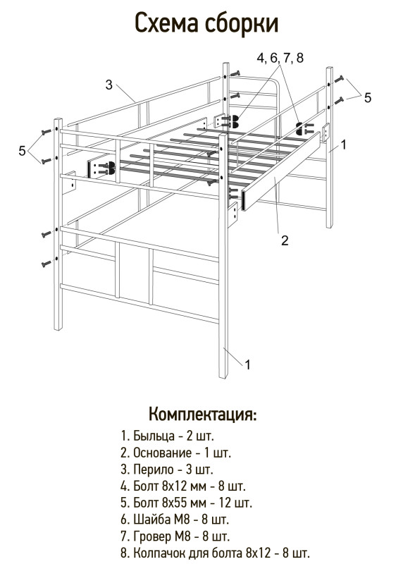 Комплект, состоящий из верхнего яруса металлической кровати Дабл Чердак