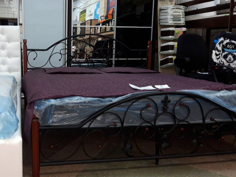 Металлическая кровать Жозефина на деревянных ножках – новое слово в домашнем комфорте. Созданная украинской мебельной фабрикой Металл дизайн, она подарит вашей спальной изысканности. Кованая сталь, украшенная изголовьем и изножьем, гармонично сочетается с массивными деревянными ножками, украшенными навершиями в форме шаров.