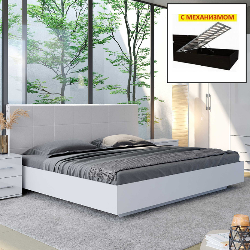 Кровать Фемели с подъемным механизмом MiroMark - размером 160X200 сделано из ДСП материала. Высота кровати с учетом изголовья составляет 1060 мм. У него нет выдвижных ящиков для белья. Длина кровати составляет 2100 мм.
