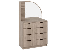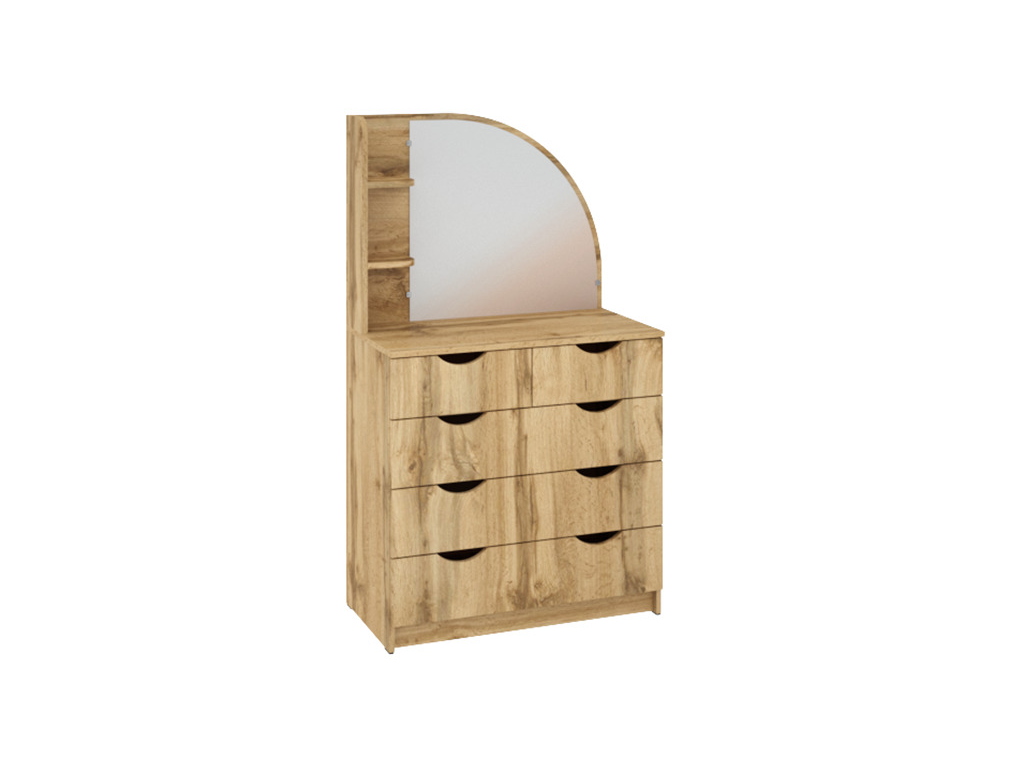 Трюмо изготовлено из высококачественной ДСП (древесностружечная плита) толщиной 16 мм, что обеспечивает устойчивость и прочность конструкции. Этот материал хорошо выдерживает нагрузки и имеет высокую степень долговечности.