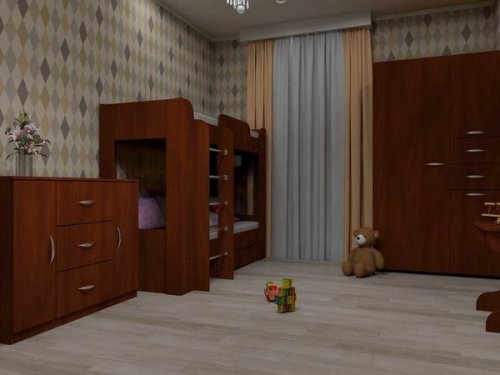 Мебель изготовлена из высококачественного ламинированного ДСП (деревопоисковая плита с ламинированным покрытием). Этот материал отличается высокой прочностью и устойчивостью к царапинам, что делает его идеальным выбором для детских помещений.