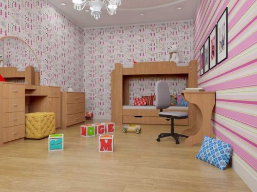 Мебель изготовлена из высококачественного ламинированного ДСП (деревопоисковая плита с ламинированным покрытием). Этот материал отличается высокой прочностью и устойчивостью к царапинам, что делает его идеальным выбором для детских помещений.