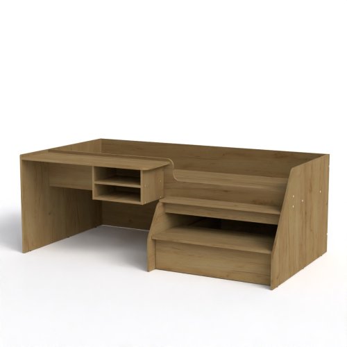 Материал изготовления кровати - ламинированное ДСП, которое известно своей прочностью и длительным сроком службы. Оно легко ухаживается и обладает устойчивостью к царапинам и воздействию влаги.