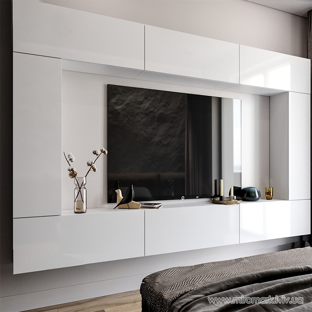 Стоимость гостиной указана за комплект фото и может зависеть от выбранных параметров. Вы можете выбрать белый или черный глянец для цвета изделия, учитывая свои предпочтения и стиль вашего интерьера.