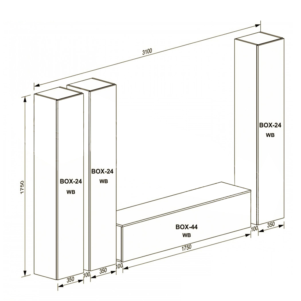 Гостиная BOX TV1 MiroMark - это стильный и функциональный набор мебели, который украсит и сделает вашу жизнь более комфортной. С высотой 3100 и глубиной 400, она имеет идеальные пропорции, чтобы подходить к любому пространству.