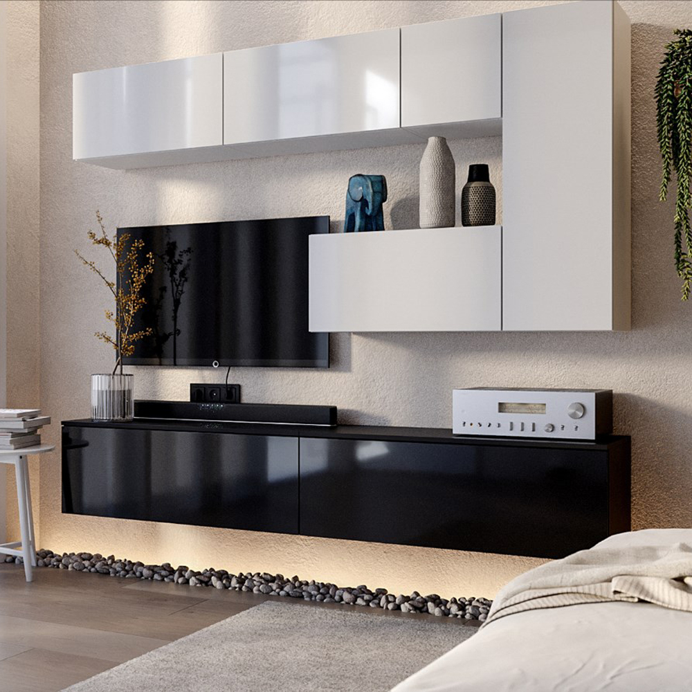 Вы можете выбрать гостиную в двух доступных цветах: белый или черный глянец. Оба варианта смотрятся элегантно и придают шарму вашему интерьеру.