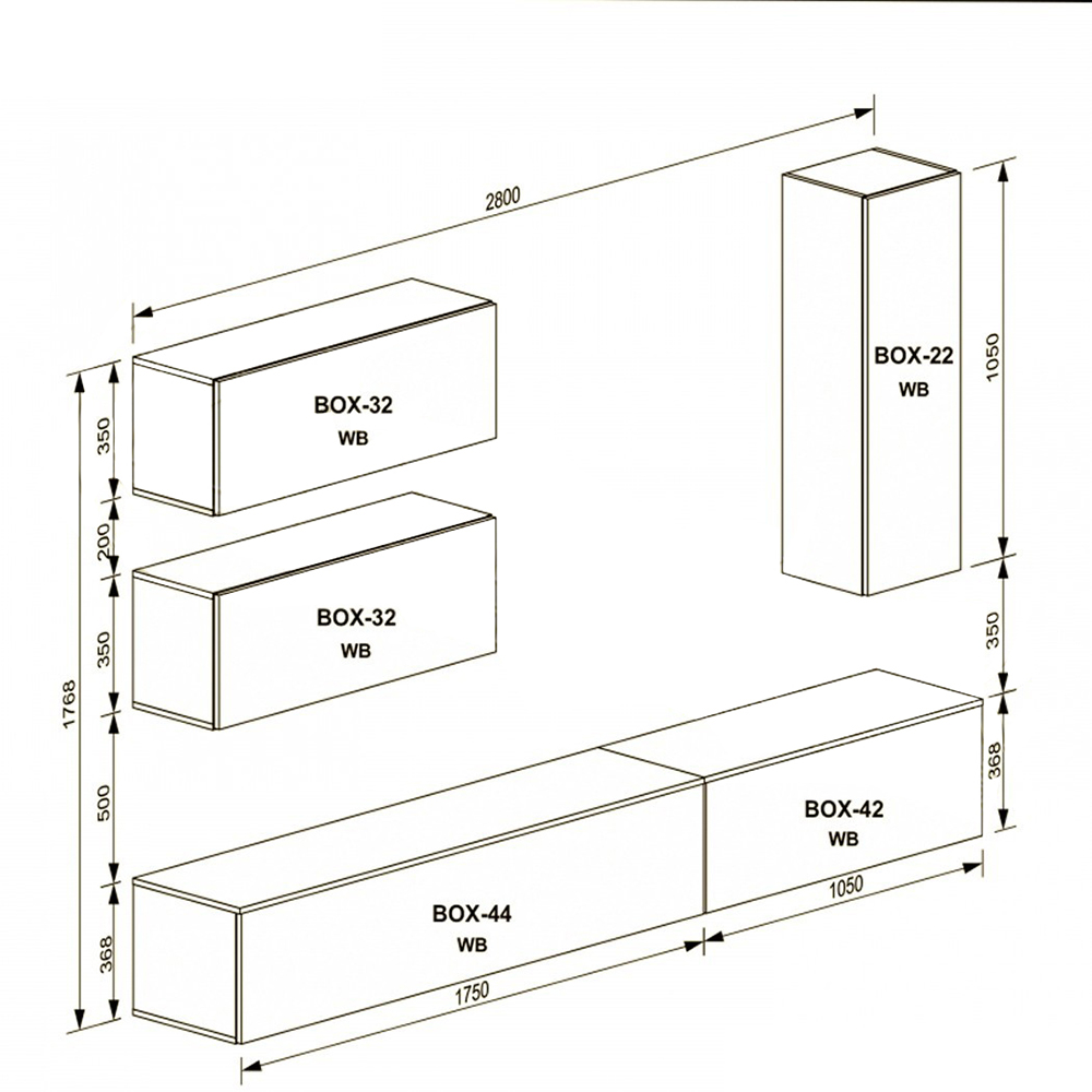 Гостиная BOX TV3 MiroMark - это стильный и функциональный набор мебели, который придаст комфорт и гармонию вашему пространству. С высотой 2800 мм и глубиной 400 мм, гостиная прекрасно подойдет для любого дома.