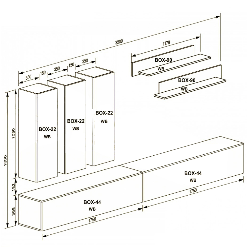 Гостиная BOX TV4 MiroMark - это стильный и практичный вариант для оформления вашего пространства. С высотой 3500 мм и глубиной 400 мм она имеет оптимальные размеры для расположения в любом жилом помещении.