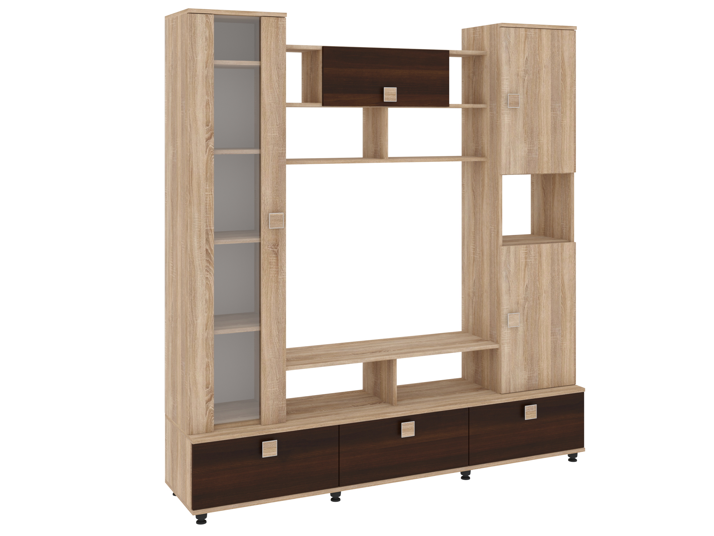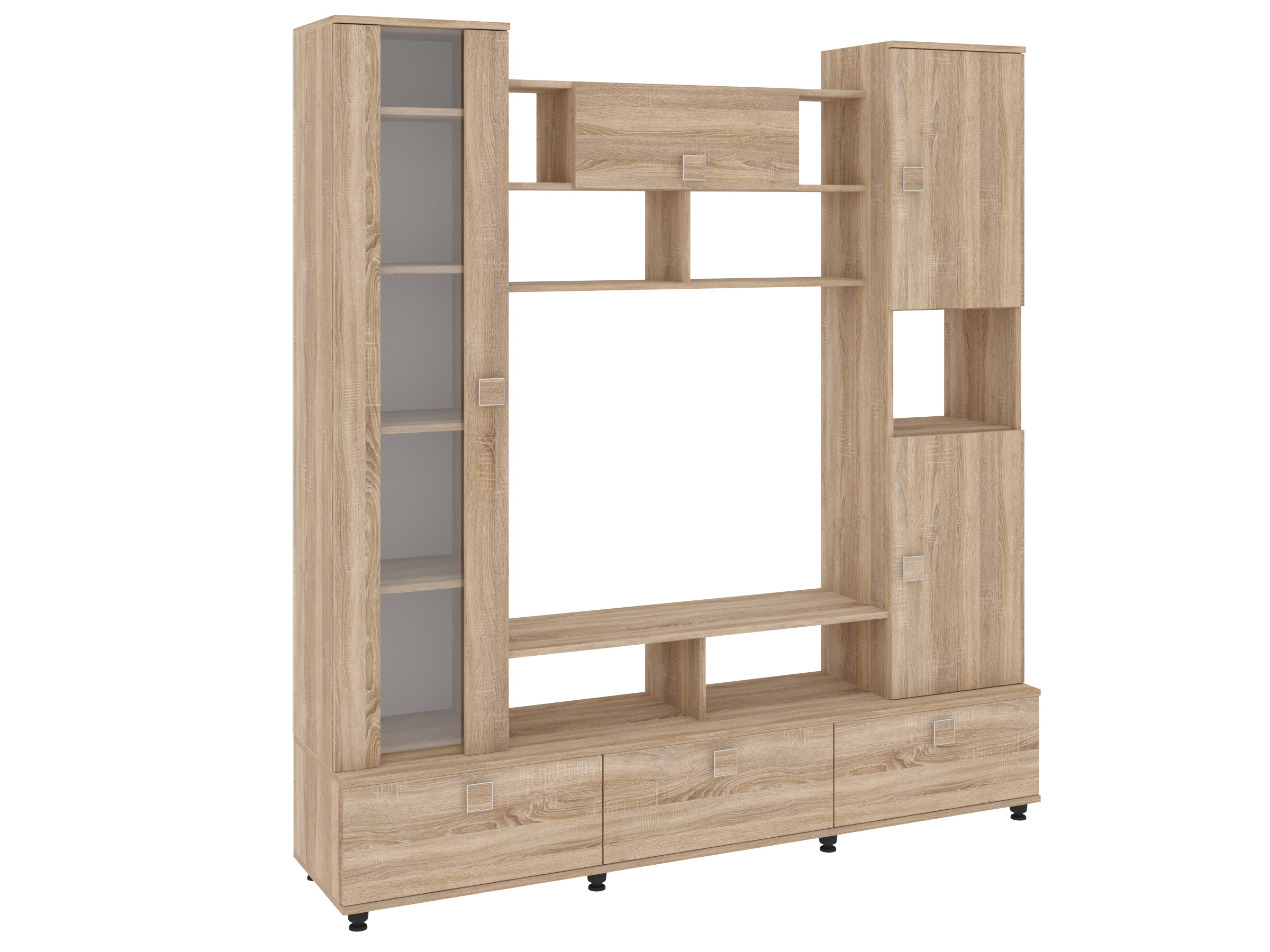 В нижней части гостиной установлено шлифованное ДВП, что обеспечивает стабильность и завершенный вид комплекта.