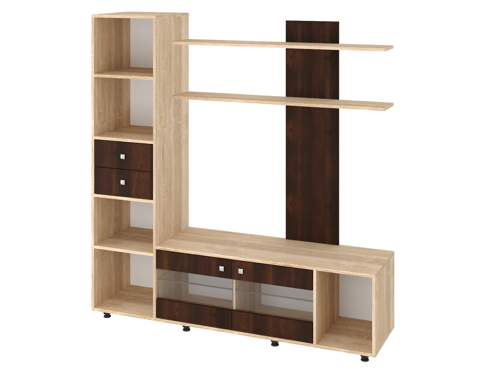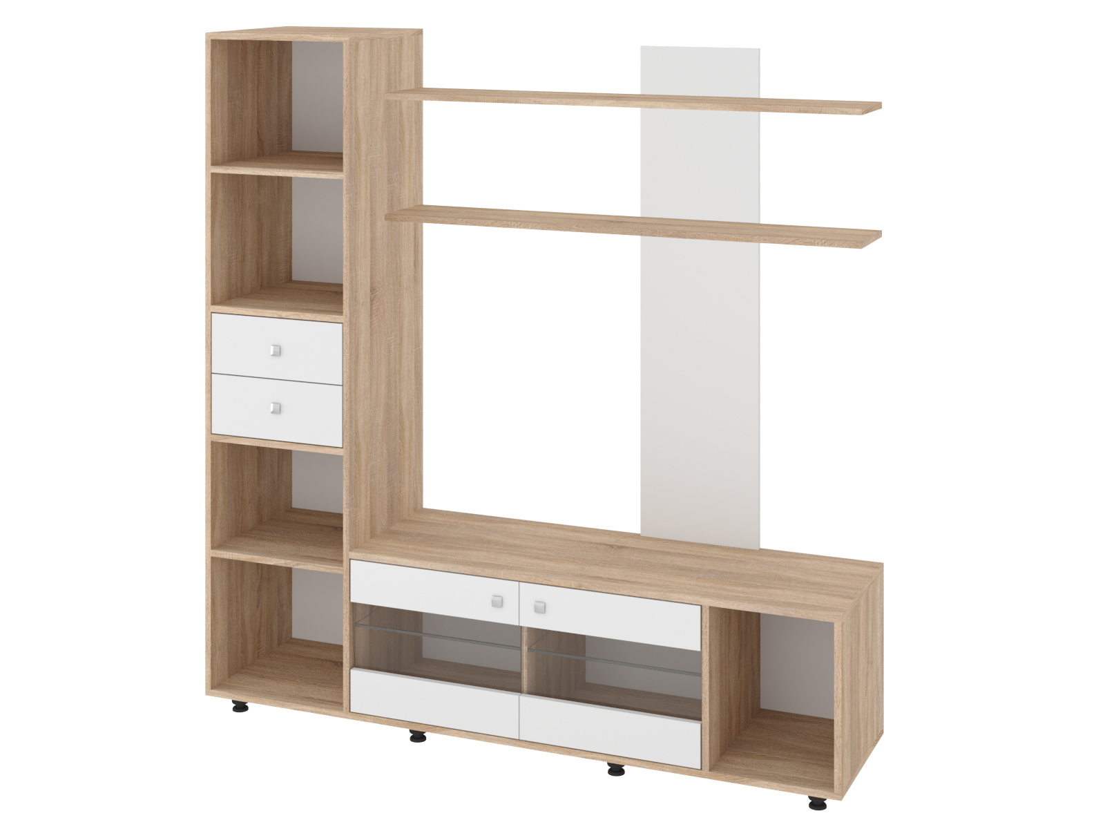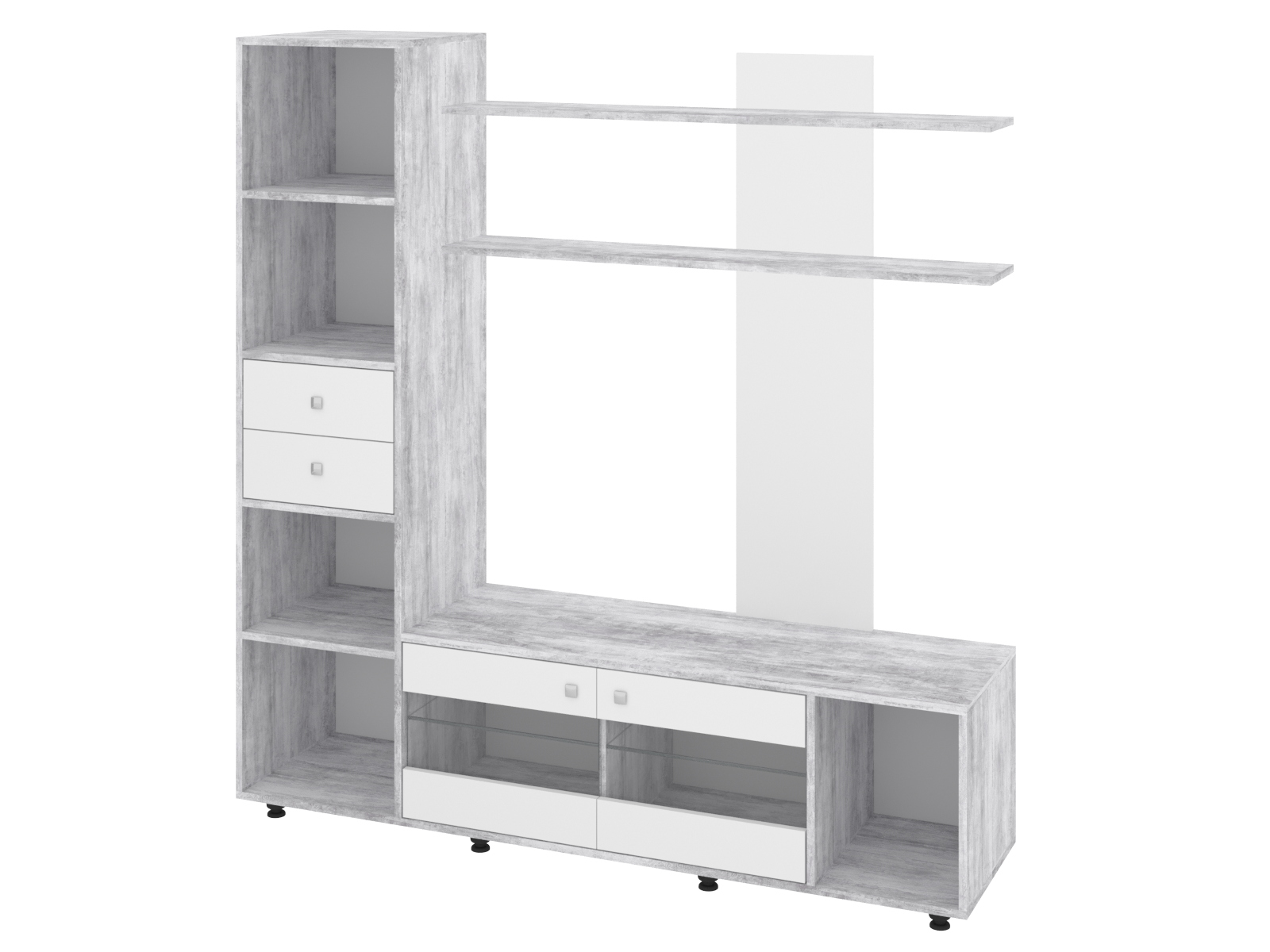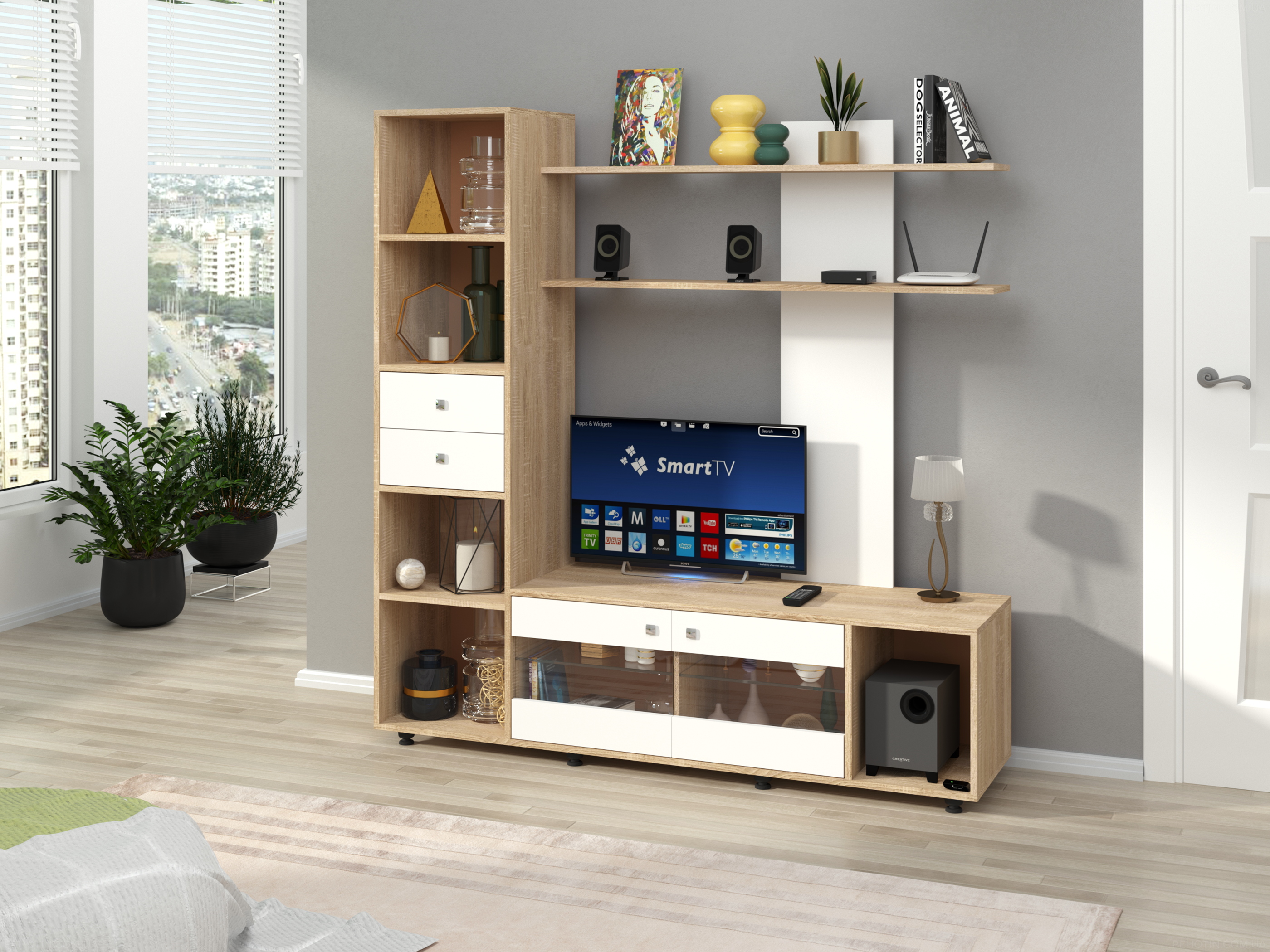 Дверцы гостиного комплекта выполнены из стекла, что добавляет элемента элегантности и позволяет вам показать ваши предметы декора или аудиосистему.