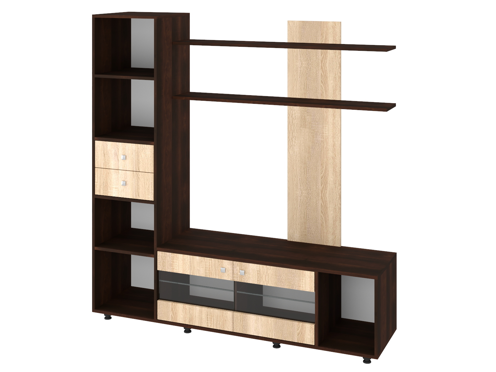1670 мм - высокая конструкция этого мебельного комплекта добавляет ему структурированности и позволяет эффективно использовать вертикальное пространство для хранения.