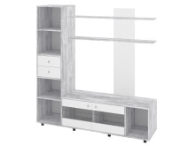 В нижней части гостиной установлено ламинированное ДВП белого цвета, которое придает комплекту завершенный вид и стабильность.