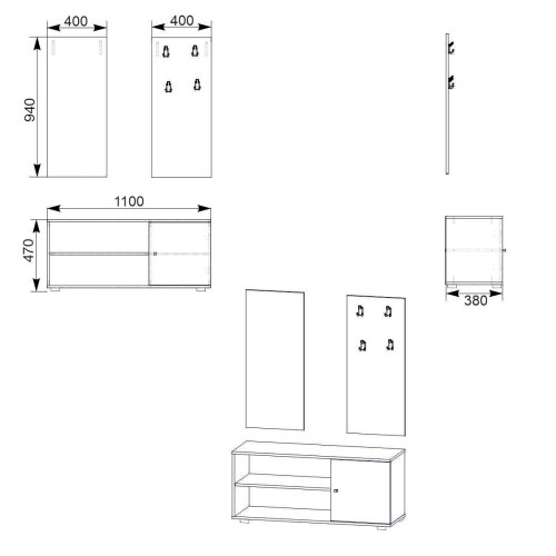 Размеры прихожей делают ее идеальной для любого пространства. Высота от 470 до 940 мм, ширина 1100 мм и глубина 380 мм позволяют вам максимально использовать это пространство для хранения вашей обуви, верхней одежды и других необходимых вещей.