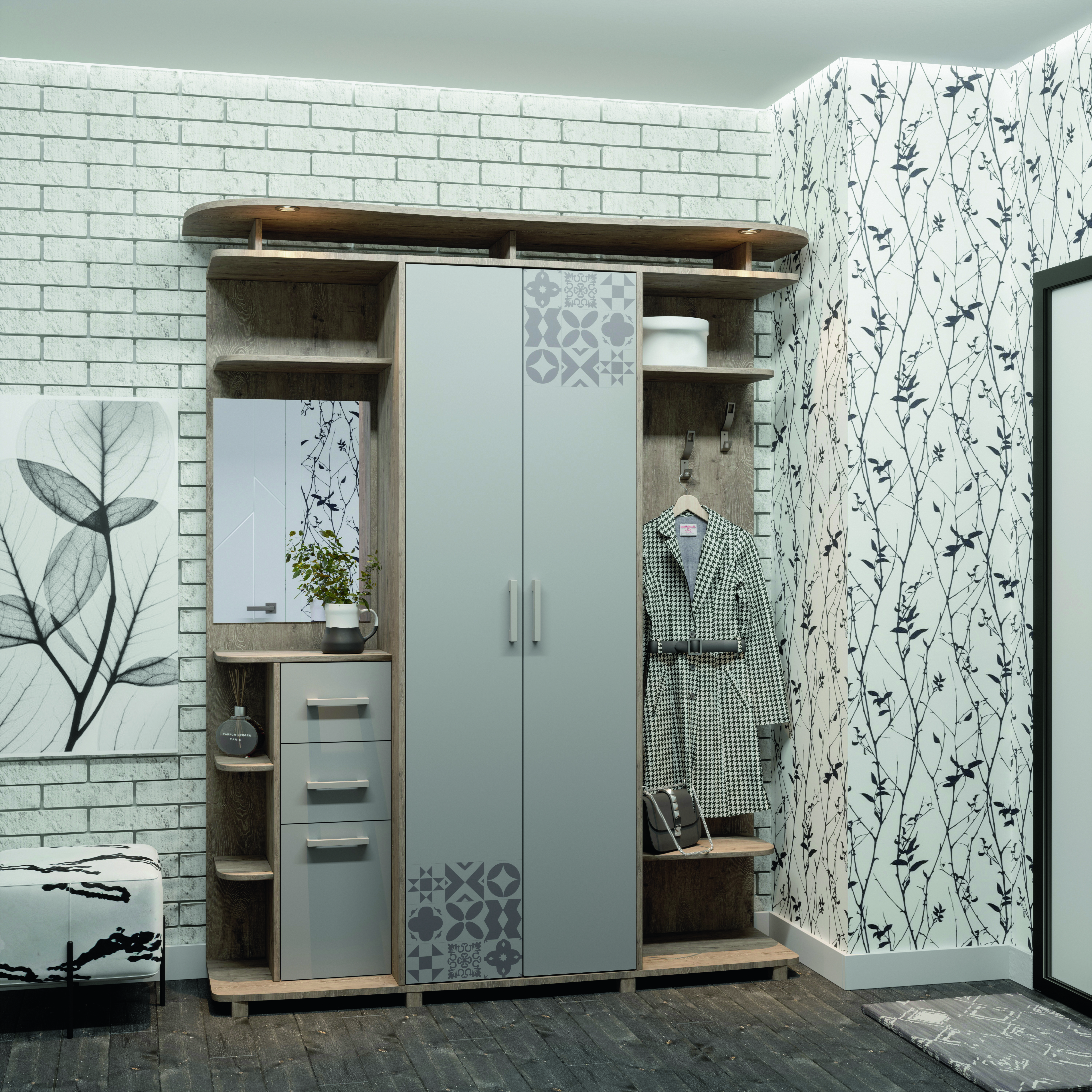 Силуэт 3 – это стильный и функциональный шкаф с впечатляющими размерами. Ее общие габариты составляют 1700*2145*465 мм, что дает большие возможности для хранения вещей. Корпус изготовлен из дуба крафт серого цвета ДСП, что придает мебельной модели элегантность и современность. Фасады выполнены в пепельном ДСП и дополнены художественной печатью, которая придает им особый шарм.