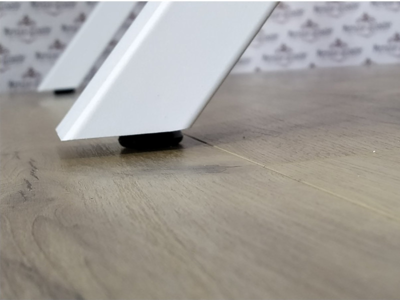 Комплектация включает две одинаковые опоры и столешницу из ДСП толщиной 32 мм с незакругленными углами. Это обеспечивает не только эстетическую привлекательность, но и практичность в использовании. Опоры стола имеют регулировку по высоте, оснащены пластиковыми ножками с болтами, что позволяет корректировать высоту для устойчивости даже на неровных полах.