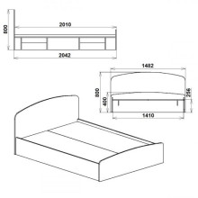 Ширина кровати составляет 1482 миллиметра, и это позволяет обеспечить комфорт для двух человек. Глубина кровати 2042 миллиметра, что добавляет пространства для удобной позиции сна.