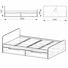 Ширина кровати составляет 1452 миллиметра, а глубина - 2042 миллиметра. Эти параметры обеспечивают достаточно пространства для двух человек, гарантируя при этом комфорт и свободу движения.