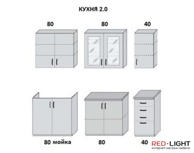 Материал производства – МДФ, обеспечивающий крепкость и долговечность. Ширина кухни составляет 2000 мм, что подходит для небольших и средних помещений.