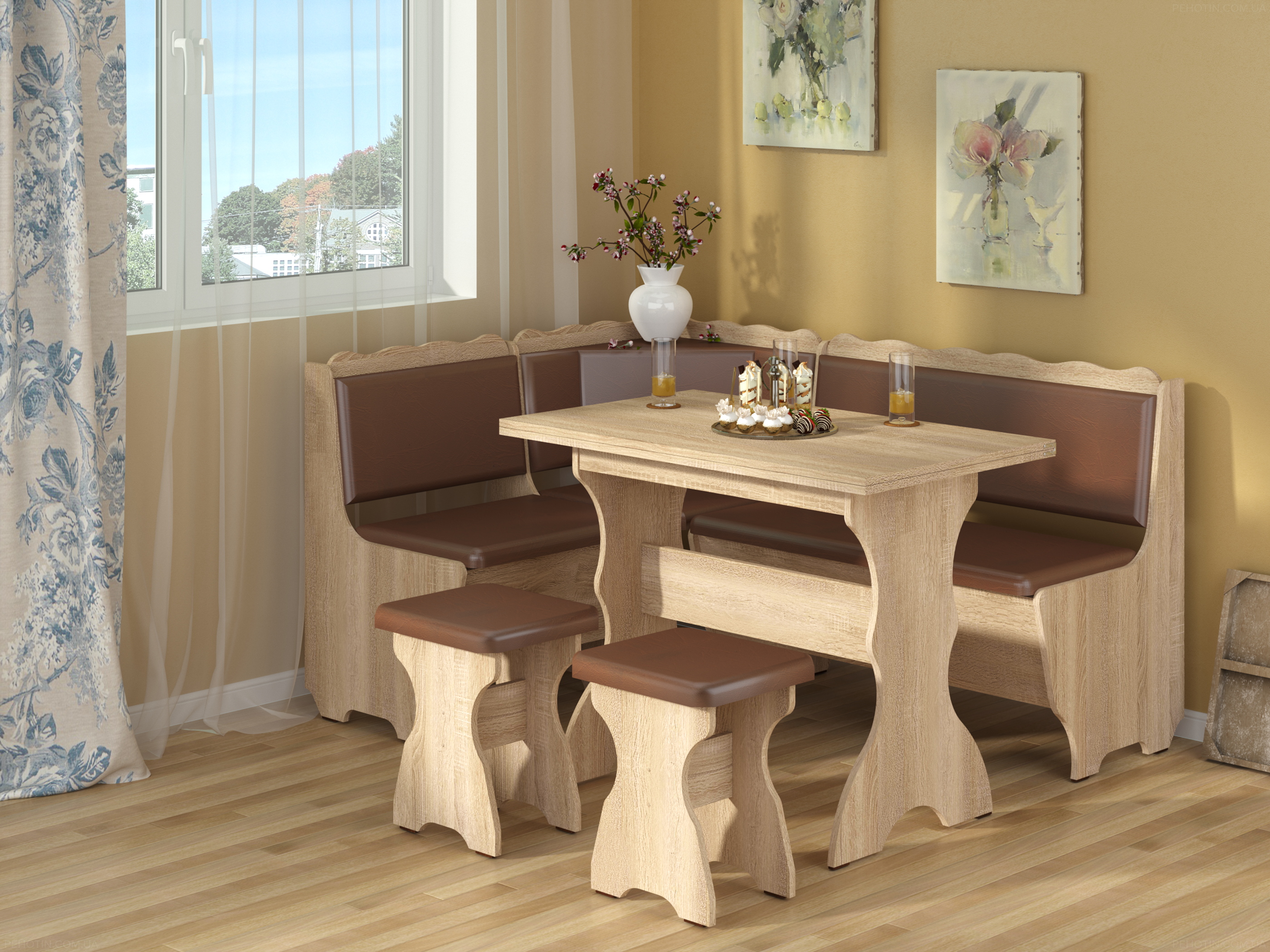 Этот кухонный уголок производится компанией "Пехотин" в Украине. Производитель гарантирует высокое качество и соблюдение всех стандартов производства. Это свидетельствует о доверии к продукции этой компании.