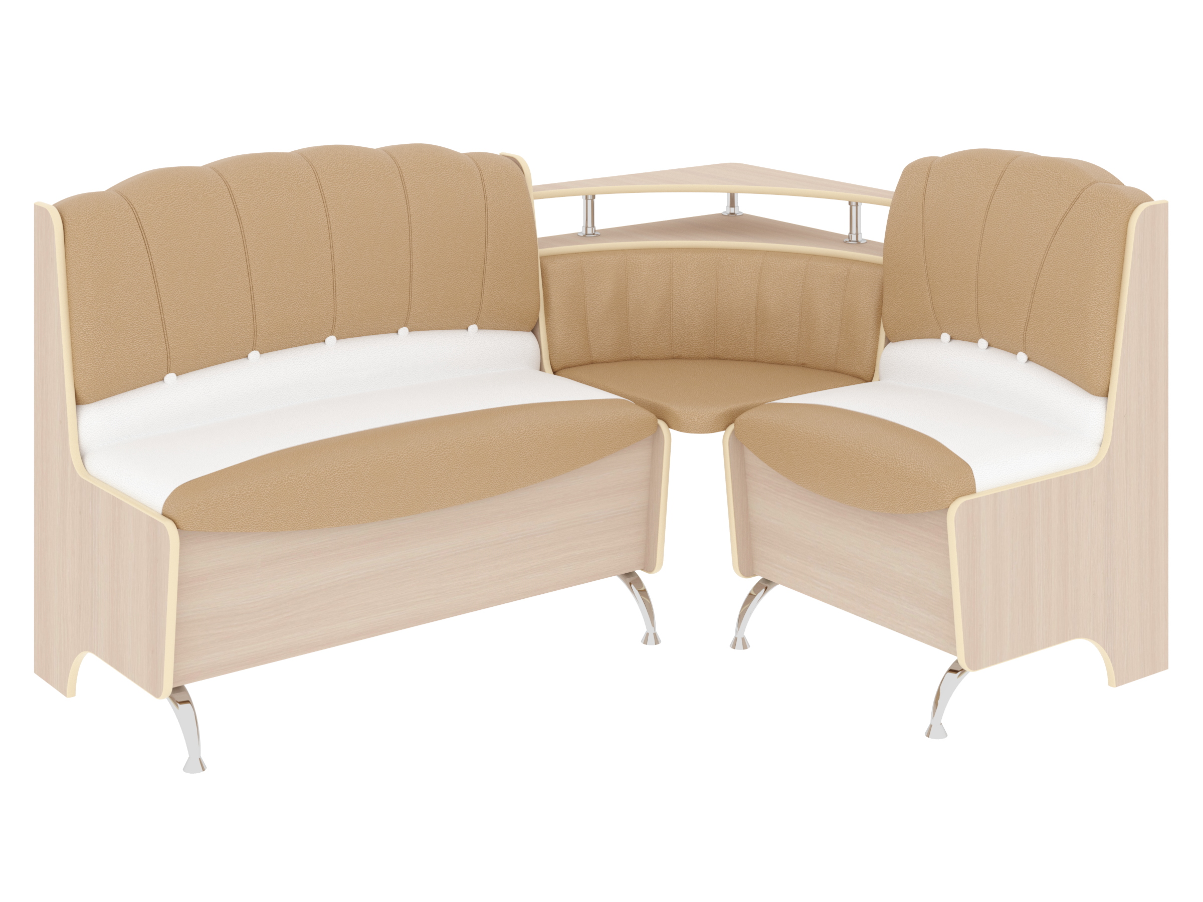 Каркас и столешница изготовлены из высококачественного ламинированного ДСП, что обеспечивает долгий срок службы и устойчивость к износу. Обивка выполнена из качественного кожзаменителя, что придает уголку стильности и легкости в обслуживании.