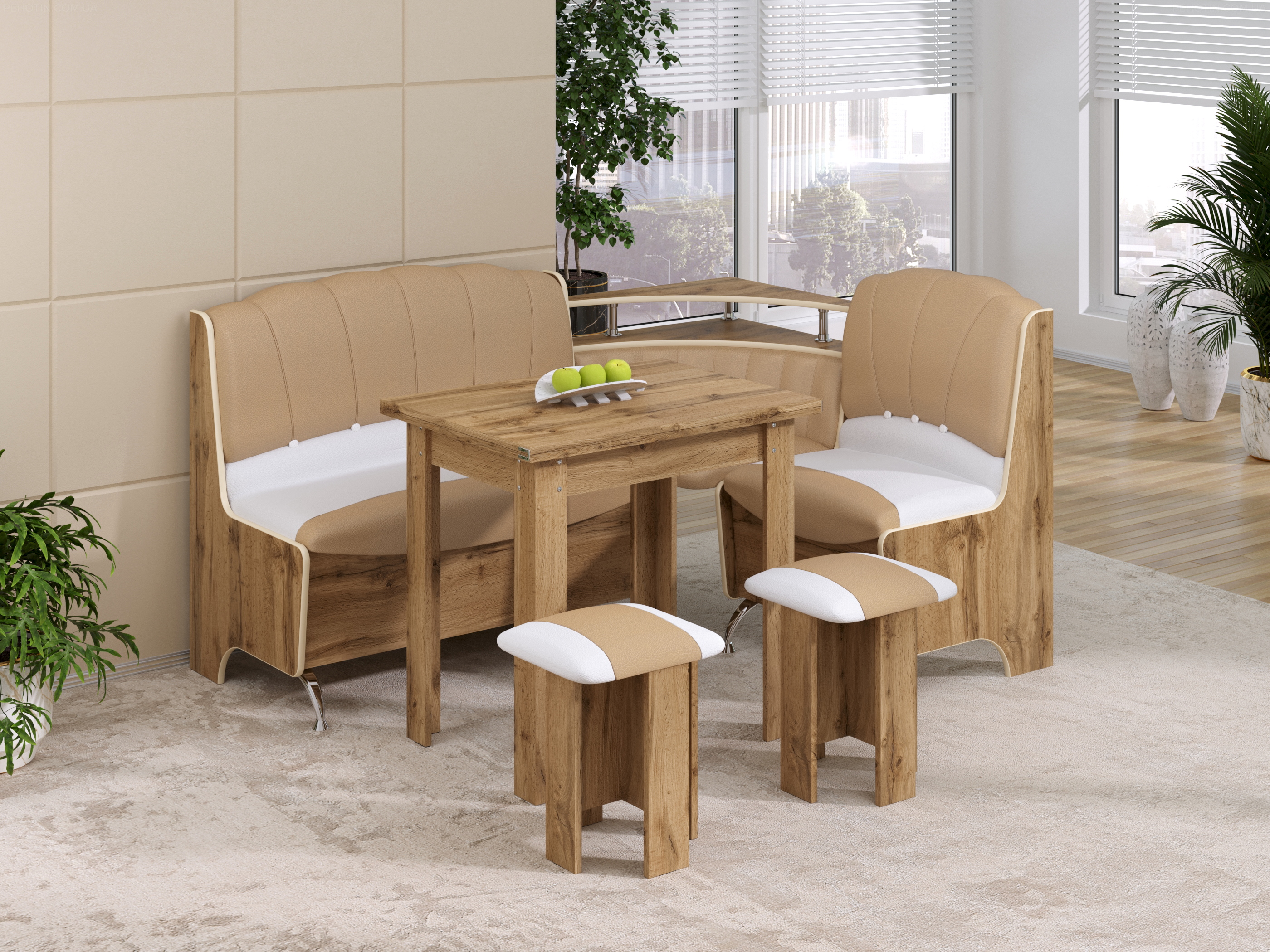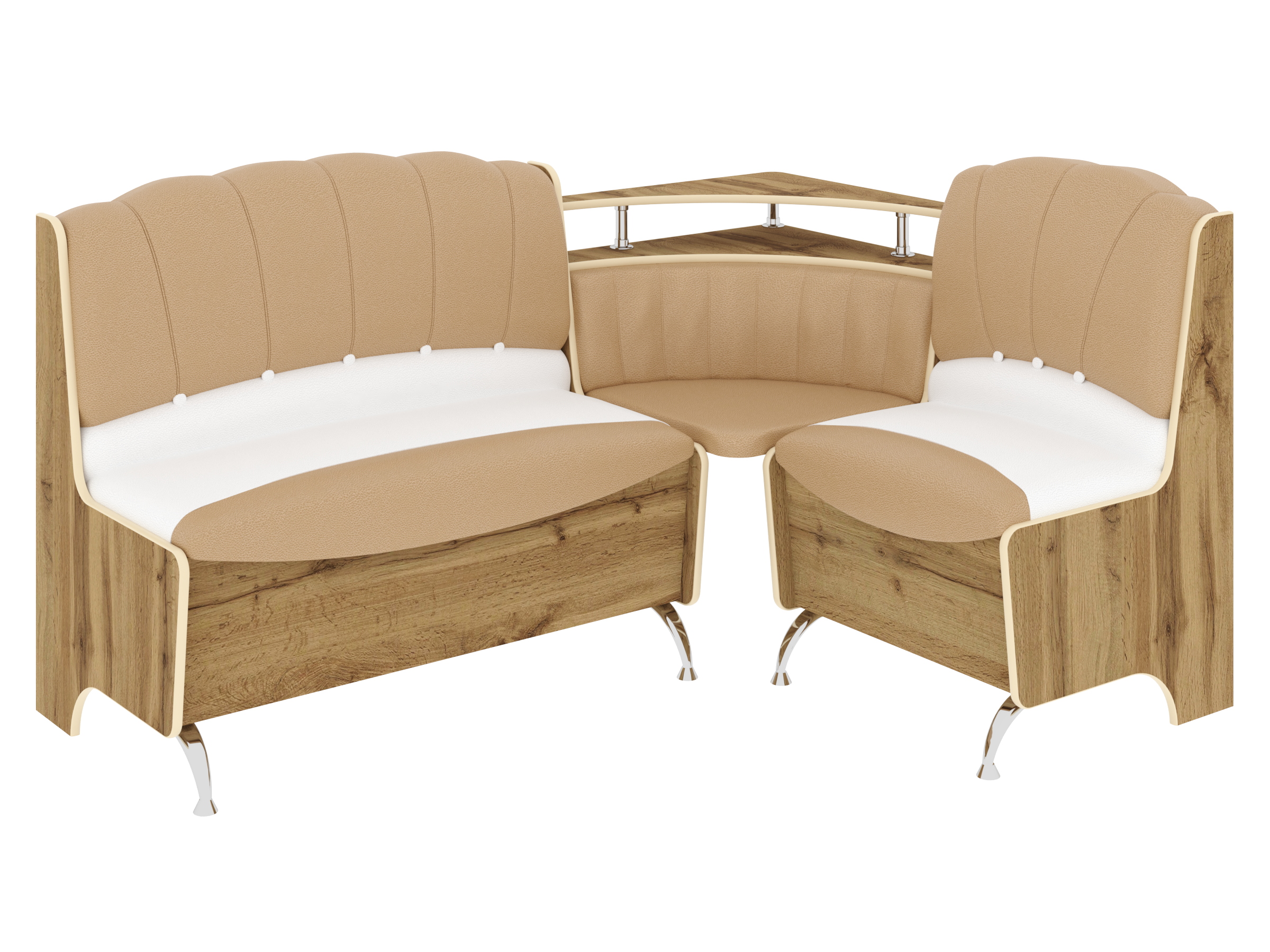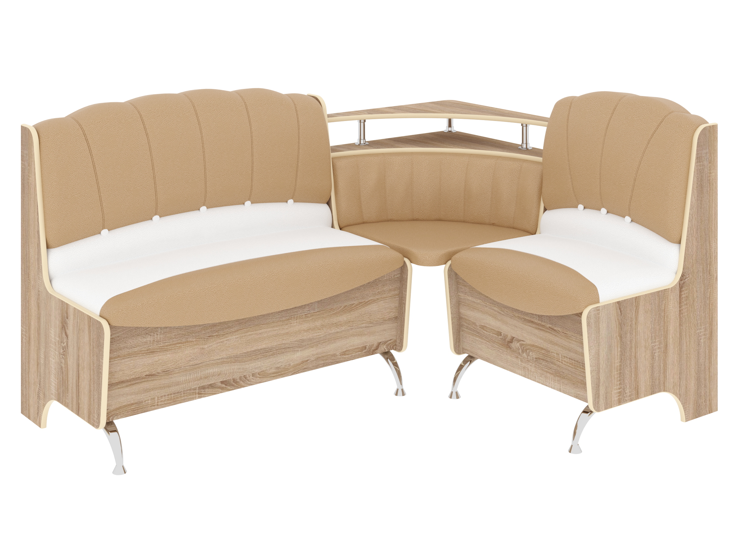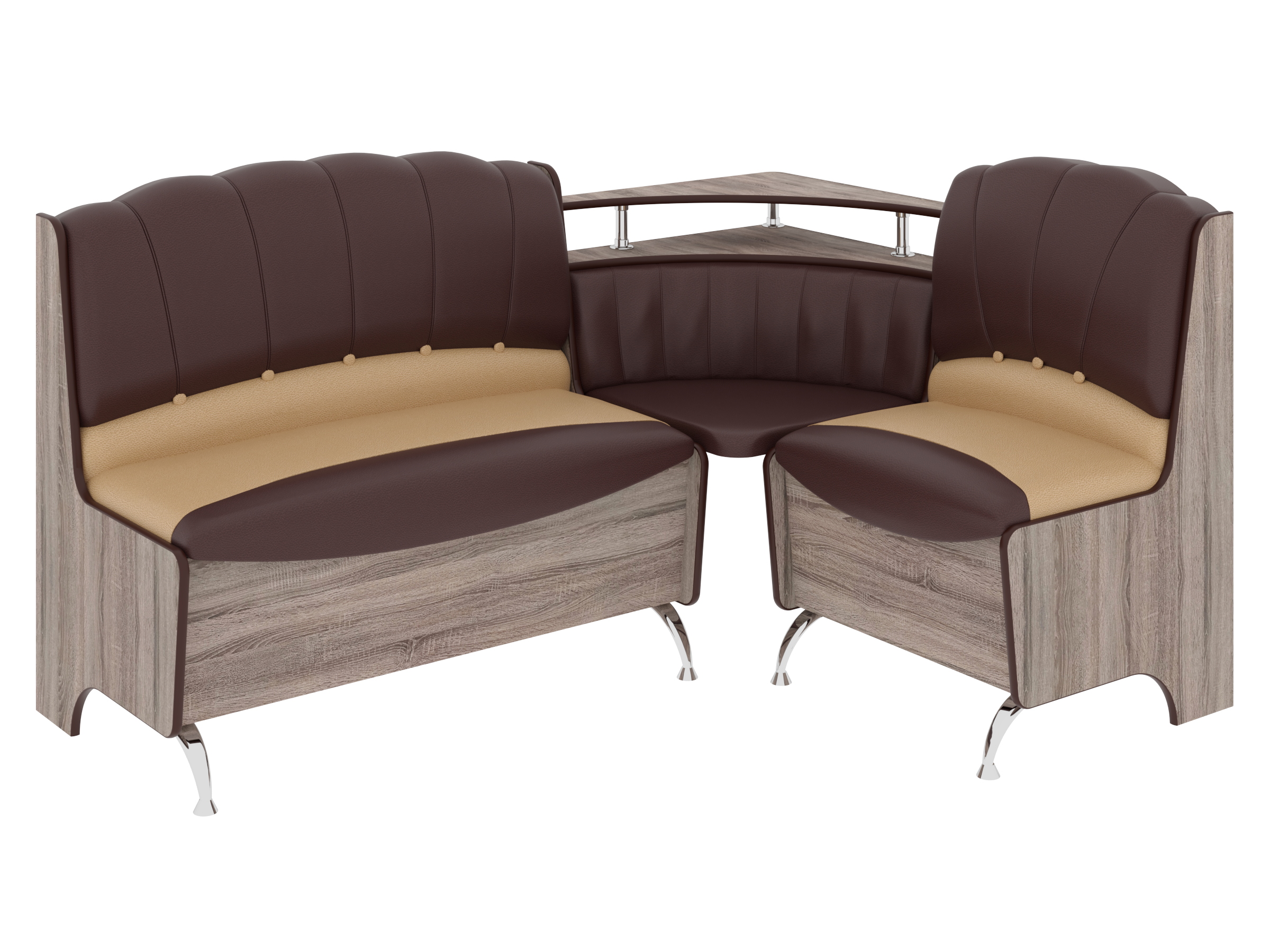 Этот кухонный уголок имеет современный и элегантный дизайн, который идеально подходит для любой кухни. Он сочетает в себе два цвета: дуб сонома и коричнево-белый, создавая гармоничную комбинацию. Такой дизайн делает его универсальным и привлекательным.
