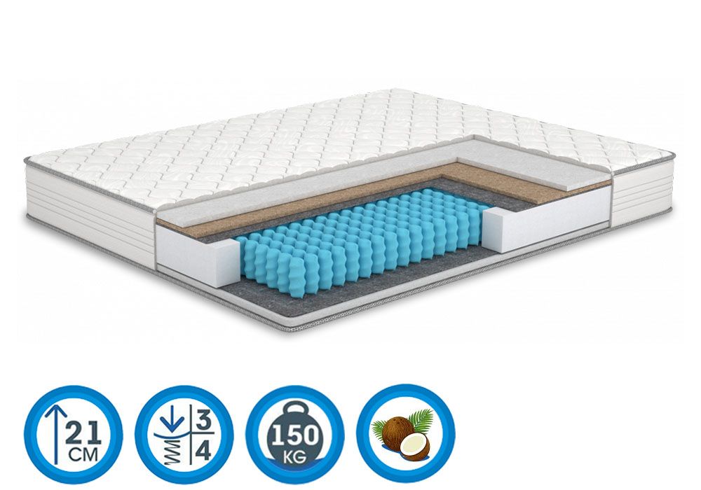 В составе матраса есть кокосовые слои, обеспечивающие дополнительную поддержку и вентиляцию. Прошитый льном стрейч-жаккардный чехол обеспечивает комфортный и мягкий спальный климат.