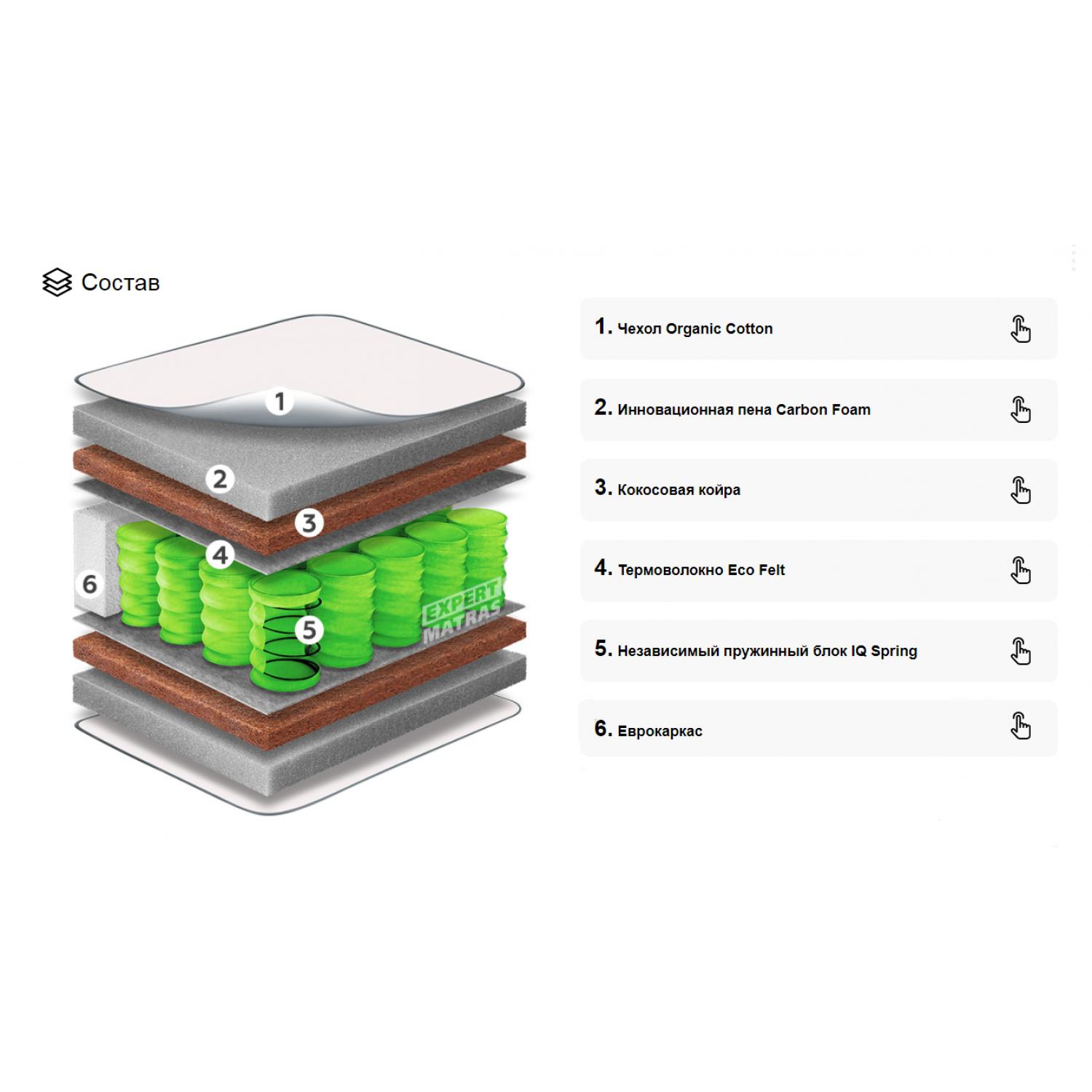 Основой матраса являются независимые пружины Pocket Spring, обеспечивающие индивидуальную поддержку каждой части вашего тела. Обе стороны матраса имеют умеренно жесткую сторону, что делает его универсальным для разных вкусов спящих.