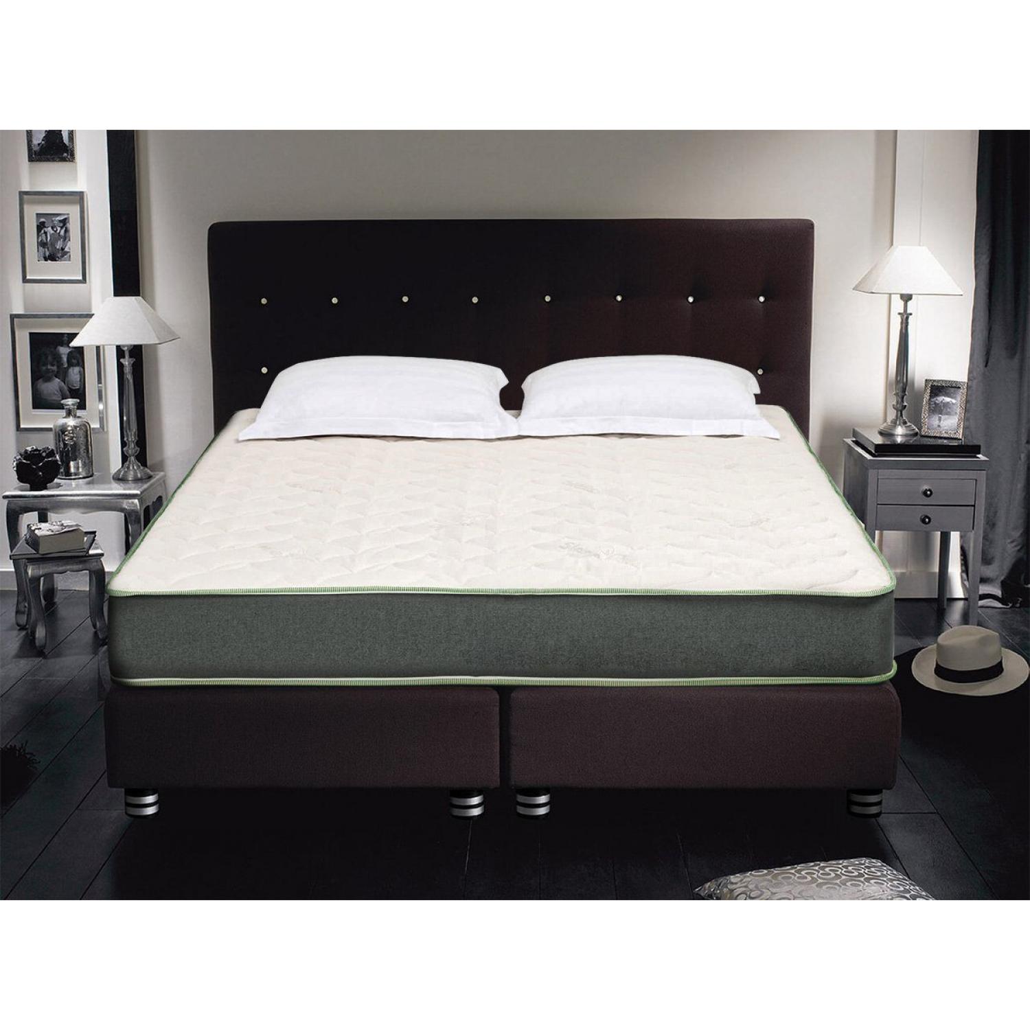 Этот матрас имеет двухстороннюю конструкцию, позволяющую вам выбирать в зависимости от ваших предпочтений и сезона. Ткань чехла изготовлена из био-хлопка, что обеспечивает приятное ощущение на ощупь и влагостойкость.