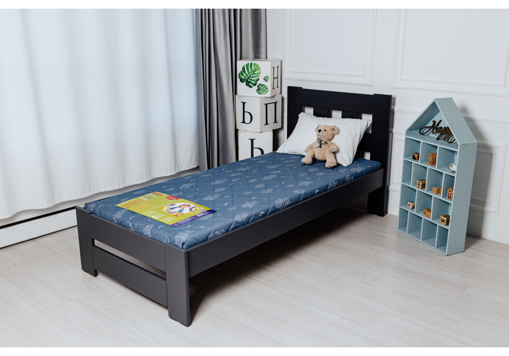 Этот матрас обеспечивает среднюю жесткость и предназначен для детей с нагрузкой до 50 кг. Он двусторонний, что позволяет выбирать комфортную поверхность для сна. Чехол на молнии из трикотажа, прошитого льном, обеспечивает удобство и легкость в уходе.