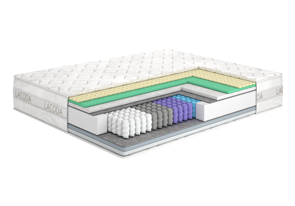 Внутренняя конструкция матраса состоит из разных слоев, каждый из которых отвечает за определенную функцию. Натуральный латекс, комфортная пена Lime Foam, Felt White, термовойлок, Lacoda 7-zone Comfort + усиленный еврокаркас, ортопедическая пена Support Lacoda и ортопедическая пена Bali Foam – это лишь некоторые из них. Каждый из этих слоев способствует комфортному сну и правильному положению тела во время сна.