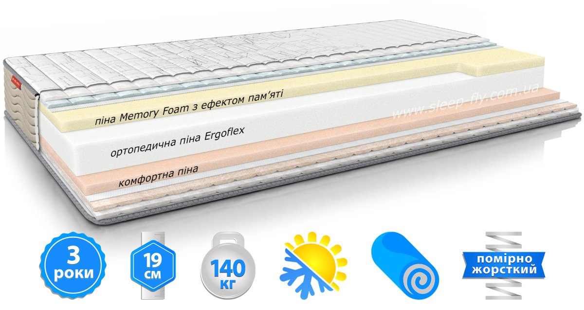 Этот матрас имеет беспружинную конструкцию, обеспечивающую равномерное распределение веса тела и стабильность во время сна. Он идеально подходит для ищущих тихий и спокойный сон без каких-либо движений партнера.