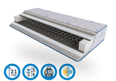 Этот матрас оснащен зависимыми пружинами Bonnel, обеспечивающими стабильную поддержку и равномерное распределение веса во время сна. Обе стороны матраса имеют умеренно жесткую поверхность, что делает его идеальным для ищущих комфортный сон без чрезмерной мягкости или жесткости.