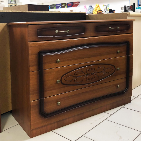 Комод "Катрин" - это утонченный и функциональный элемент мебельного интерьера, который придаст вашему помещению шарм и удобство. Его размеры – 1090х890х470 мм, что обеспечивает достаточную площадь для хранения различных предметов и аксессуаров.
