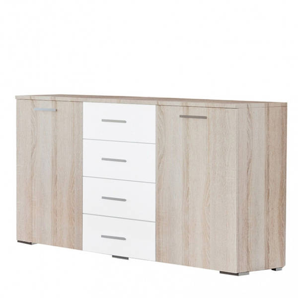 Фасады комода выполнены в стильных оттенках дуба сонома и белого (ДСП), что придает ему современный и элегантный вид. Это позволяет легко интегрировать комод в различные стили и создать гармоничное сочетание цветов в комнате.